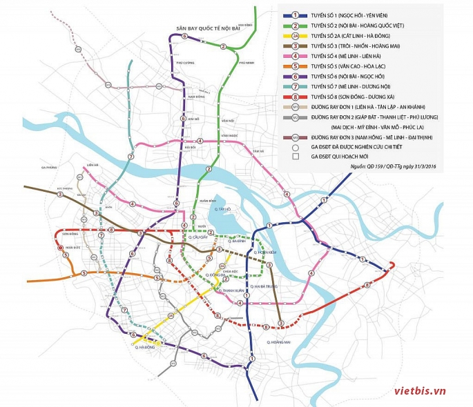 Hiện tại, Hà Nội có 2 tuyến metro đã đi vào hoạt động: tuyến metro số 2A, ga Cát Linh - ga Yên Nghĩa đi vào hoạt động từ tháng 11/2021, với tổng chiều dài 13km; tuyến metro số 3 (giai đoạn 1), ga Nhổn - ga Hà Nội, đoạn trên cao từ Nhổn đến Cầu Giấy và ngược lại. Ảnh: Khánh Huy Đến năm 2030, thành phố đặt mục tiêu hoàn thành 97 km tuyến metro Hiện tại, Hà Nội có 2 tuyến metro đã đi vào hoạt động. Thứ nhất là tuyến metro số 2A, ga Cát Linh - ga Yên Nghĩa đi vào hoạt động từ tháng 11/2021, với tổng chiều dài 13km. Tuyến metro này có 12 nhà ga: Cát Linh, La Thành, Thái Hà, Láng, Thượng Đình, Vành Đai 3, Phùng Khoang, Văn Quán, Hà Đông, La Khê, Văn Khê, và Yên Nghĩa. Tuyến 2A có tần suất hoạt động là 8 tàu/giờ/chiều, có thể vận chuyển 960 người/tàu, với vận tốc di chuyển khai thác là 35 km/h và đạt tối đa là 80 km/h. Trong năm 2023, số lượng hành khách sử dụng trung bình khoảng 29.600 lượt/ ngày. Thứ hai phải kể đến tuyến metro số 3 (giai đoạn 1), ga Nhổn - ga Hà Nội, đoạn trên cao từ Nhổn đến Cầu Giấy và ngược lại. Tuyến metro này được đưa vào khai thác từ đầu tháng 8/2024, với chiều dài là 8,5 km. Tuyến metro hiện tại có 12 nhà ga, trong đó có 8 ga trên cao: Nhổn (S1), Minh Khai (S2), Phú Diễn (S3), Cầu Diễn (S4), Lê Đức Thọ (S5), Đại học Quốc Gia (S6), Chùa Hà (S7), Cầu Giấy (S8) 4 ga ngầm (Kim Mã, Cát Linh, Văn Miếu, ga Hà Nội). Đoạn metro này có tần suất hoạt động 8 tàu/giờ/chiều, vận tải được 920 người/tàu, vận tốc di chuyển khai thác là 35 km/h và đạt tối đa 80 km/h. Trong giai đoạn khai trương (miễn phí vé), ghi nhận có khoảng 60.000 lượt khách/ngày lưu thông trên đoạn tàu này. Dự kiến lượt khách có thể sẽ giảm sau khi giai đoạn này kết thúc. Đến năm 2030, thành phố đặt mục tiêu hoàn thành 97 km tuyến metro, bao gồm guyến số 2, phần còn lại guyến số 3 và guyến số 5. Đến năm 2035, thành phố sẽ tiếp tục khai thác 301 km trên tổng 398 km đường sắt, chiếm 76% tổng chiều dài đường sắt, gồm các guyến số 1, số 2 kéo dài đi Sóc Sơn, số 2A kéo dài đến Xuân Mai, số 3 kéo dài đi Sơn Tây, số 4, 6, 7, 8 và tuyến kết nối các đô thị vệ tinh. Đến năm 2045, thành phố sẽ hoàn tất 200 km tuyến metro của các tuyến điều chỉnh và bổ sung theo Quy hoạch chung được phê duyệt.