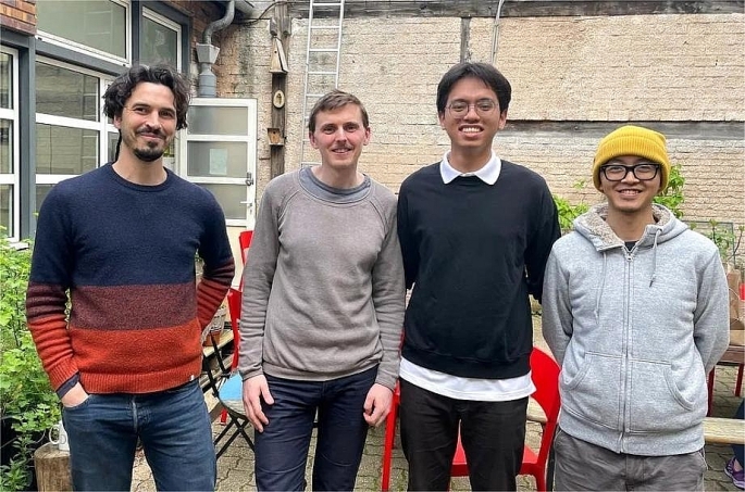 Nguyễn Văn Bình (thứ hai từ phải sang) và bạn bè khi làm việc tại Pháp. Ảnh: NVCC Thời gian đầu học tập tại Singapore, Bình gặp nhiều khó khăn trong quá trình giao tiếp. Tiếng Anh vốn là lĩnh vực anh khá tự tin nhưng khi sang Singapore, anh chỉ nghe được giảng viên dạy, còn giao tiếp với ban bè lại khó vì không thể nghe được giọng tiếng Anh của người Singapore. Để khắc phục điều này, Bình chăm chỉ nói chuyện, có những hoạt động giao lưu gắn kết với bạn bè. Một khó khăn nữa của Bình là chương trình học khá nặng dù anh đã phần nào làm quen với chương trình học tại Đại học Bách khoa Hà Nội. Bình cho biết các giảng viên thường giảng nhiều kiến thức trong mỗi buổi học nên sinh viên nghỉ sẽ khó theo kịp chương trình. Hơn nữa, điểm số thầy cô chấm cũng rất khắt khe, chỉ có khoảng 5% sinh viên được điểm A. Đặt mục tiêu đạt kết quả tốt nhất có thể, nam sinh đã vạch ra kế hoạch, phương pháp học cụ thể để phấn đấu. Sau các buổi học trên lớp, anh chăm chỉ hoàn thành các bài tập được giao, tìm tòi, học hỏi thêm các kiến thức khác. Anh cũng rèn luyện được kỹ năng tự học những kiến thức mới. Những vấn đề chưa hiểu, Bình mạnh dạn trao đổi với thầy cô để hiểu sâu bài hơn. Một thuận lợi của Bình là anh làm trợ giảng từ năm thứ hai đại học. Việc này giúp anh thu lượm được nhiều kiến thức, kinh nghiệm, còn giúp anh đạt kết quả xuất sắc ở nhiều môn học, trong đó có điểm số tuyệt đối môn cấu trúc dữ liệu và thuật toán. Kết thúc chương trình học, Bình tốt nghiệp với kết quả mỹ mãn, ngoài sự mong đợi. Anh đạt điểm trung bình rất cao là 4,9/5, nhận được giải thưởng Halbrecht Associates dành cho sinh viên có điểm trung bình học tập xếp thứ hai ngành Kỹ thuật máy tính. Bình khá bất ngờ với kết quả này bởi anh không nghĩ sẽ vào được top đầu của ngành học. Năm thứ nhất, điểm số của Bình chưa tốt như kỳ vọng. Càng về sau, anh càng bứt phá trong học tập. Năm cuối, anh đạt được điểm A ở hầu hất các môn, còn có điểm cao nhất ở 3 môn: thị giác máy tính và nhận dạng mẫu, học máy và hệ thống dữ liệu lớn cho khoa học dữ liệu. Đây là những kết quả xứng đáng cho những nỗ lực của chàng trai có tính kỷ luật cao này. Bên cạnh việc học, Bình còn thực tập tại 4 công ty khởi nghiệp của Singapore và Pháp. Làm việc trong những môi trường này giúp anh trở nên sáng tạo, đa năng hơn. Dự định của Bình thời gian tới là làm kỹ sư phần mềm cho một công ty khởi nghiệp chuyên cung cấp giải pháp quản lý nhân sự, phản hồi khách hàng và marketing cho các chuỗi nhà hàng đa quốc gia. Với tài năng, sự quyết tâm và cầu thị, chắc chắn rằng, Nguyễn Văn Bình sẽ còn gặt hái nhiều thành công trong tương lai. An Nhiên