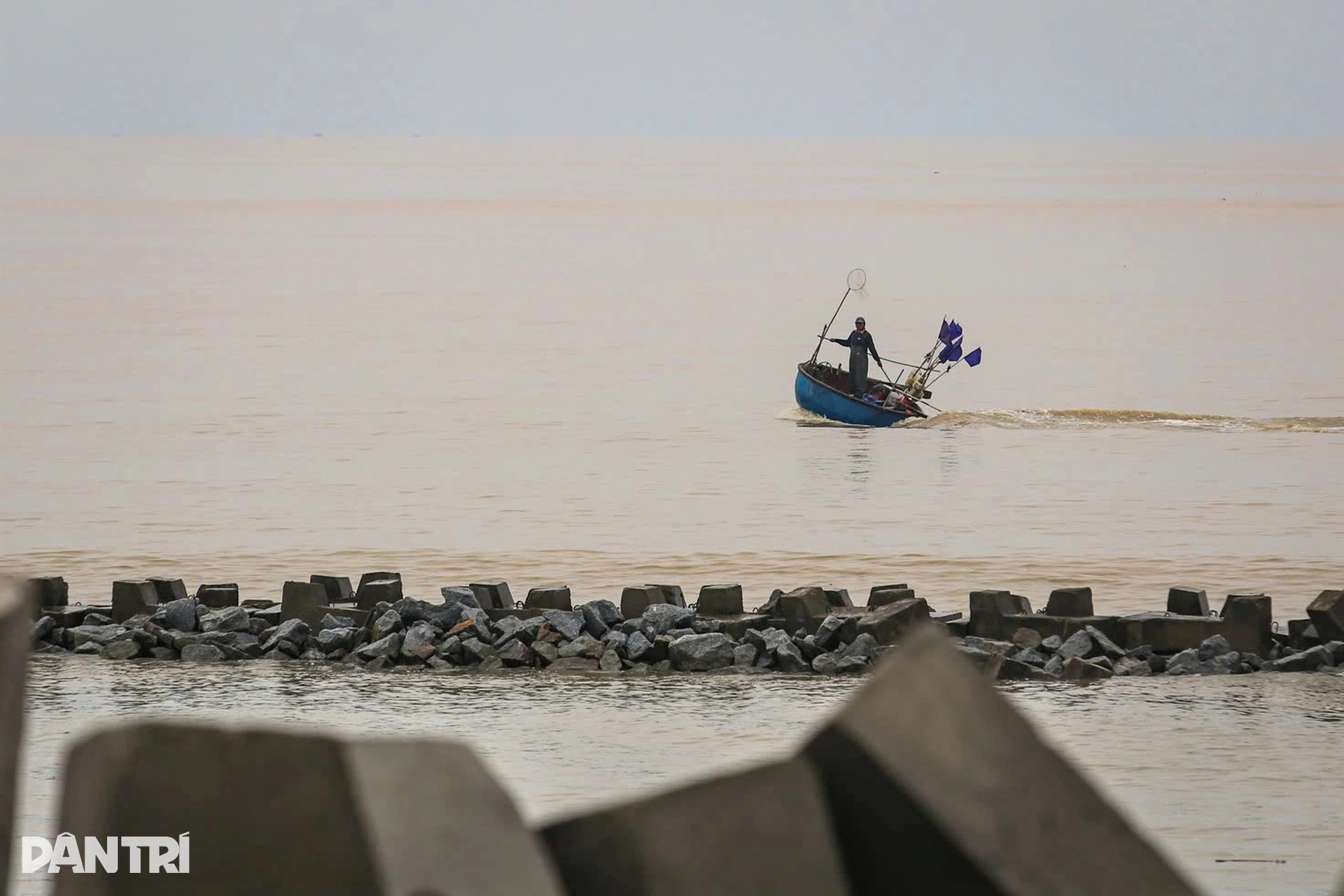 Tình trạng nước biển xâm thực gây ra sạt lở, hành lang đê bị ảnh hưởng, cấu kiện bê tông của kè chắn sóng cũng bị sóng đánh dạt vào bờ.