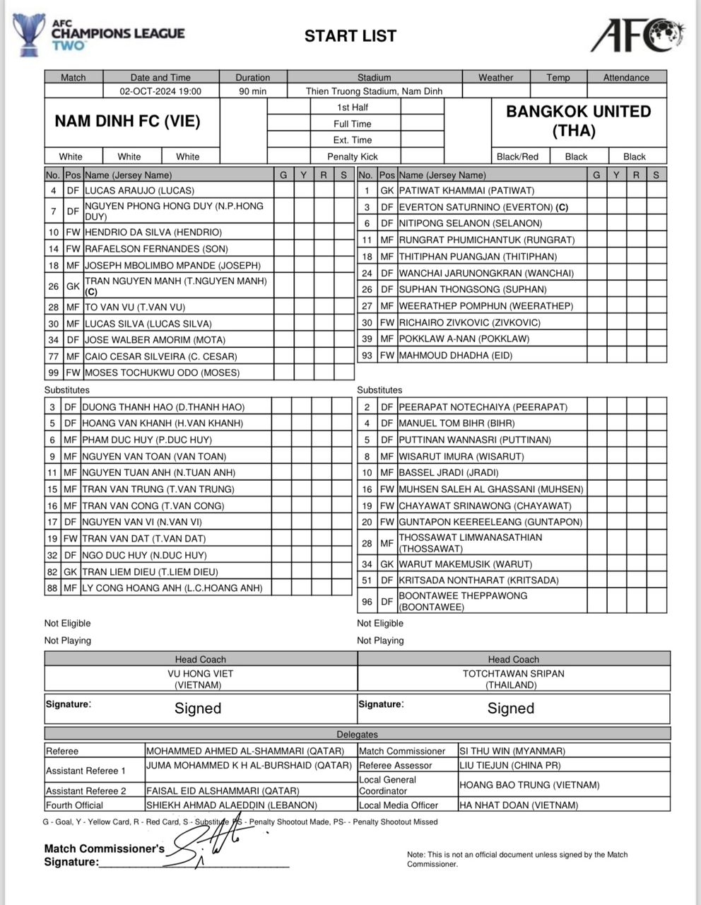 Với kết quả này, Nam Định và Bangkok United có cùng 4 điểm và tiếp tục giữ những vị trí cao nhất tại bảng đấu của mình.