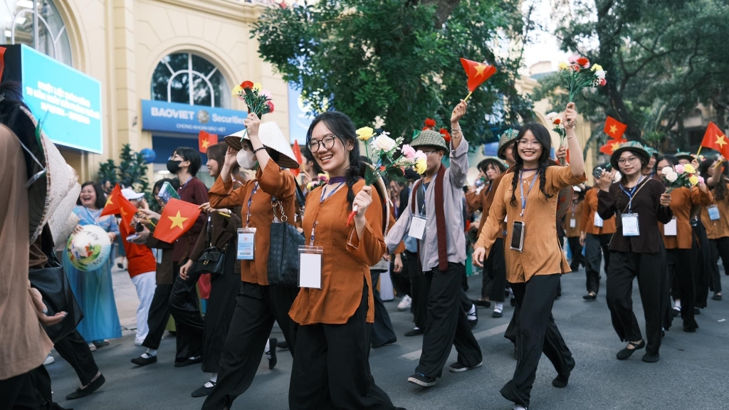 Đại diện các lực lượng tham gia phần diễu hành trong buổi tổng duyệt "Ngày hội văn hóa vì hòa bình". Ảnh: M.M Chương trình "Ngày hội văn hóa vì hòa bình" được chia làm ba phần chính, bao gồm: Phần I – Ký ức Hà Nội: tái hiện lại những thời khắc lịch sử của Hà Nội qua các tiết mục nghệ thuật, đặc biệt là sự kiện đoàn quân chiến thắng tiến vào tiếp quản Thủ đô vào ngày 10/10/1954. Những ca khúc nổi tiếng như “Người Hà Nội” của nhạc sĩ Nguyễn Đình Thi và “Tiến về Hà Nội” của Văn Cao sẽ vang lên, gợi nhớ lại những cảm xúc mãnh liệt của nhân dân Thủ đô trong những ngày tháng Mười lịch sử. Phần II – Dòng chảy di sản: chương trình giới thiệu các di sản văn hóa của Thủ đô, bao gồm trình diễn di sản văn hóa phi vật thể cùng các loại hình nghệ thuật dân gian như múa sênh tiền, múa Bài Bông, Ải Lao, múa rồng Giảo Long, chèo tàu Tổng Gối… Sự kiện này còn là cơ hội để quảng bá hình ảnh Hà Nội như một thành phố sáng tạo và giàu di sản văn hóa, góp phần thu hút du khách trong và ngoài nước. Phần III – Hà Nội: Thành phố vì hòa bình, thành phố sáng tạo: các màn trình diễn nghệ thuật sẽ tiếp tục giới thiệu về hành trình phát triển của Hà Nội từ một thành phố bị tàn phá bởi chiến tranh trở thành một Thành phố vì hòa bình với sức sống mạnh mẽ, hiện đại. Chương trình sẽ khép lại với phần diễu hành hoành tráng, có sự tham gia của đại diện các quận, huyện, thị xã và các tầng lớp nhân dân Thủ đô, tạo nên một bức tranh sống động về một Hà Nội đa sắc màu văn hóa. "Ngày hội văn hóa vì hòa bình" là sự kiện văn hóa lớn của Hà Nội, được kỳ vọng sẽ tạo ra hiệu ứng truyền thông đặc biệt, lan tỏa giá trị lịch sử và văn hóa của Thủ đô đến với cả nước và bạn bè quốc tế. Chương trình được truyền hình trực tiếp trên kênh HTV1 vào sáng ngày 6/10/2024, mang đến cho khán giả toàn quốc cơ hội trải nghiệm không khí ngày hội đặc sắc. Thông qua sự kiện này, Hà Nội không chỉ khẳng định vị thế của thành phố lịch sử, văn hóa mà còn là trung tâm du lịch, kinh tế, chính trị quan trọng của cả nước. Việc tổ chức "Ngày hội văn hóa vì hòa bình" cũng là một phần trong chiến lược phát triển các sản phẩm công nghiệp văn hóa gắn với các sự kiện kỷ niệm Ngày Giải phóng Thủ đô hàng năm, góp phần thúc đẩy du lịch văn hóa và phát triển kinh tế bền vững cho Thủ đô. Mộc Miên